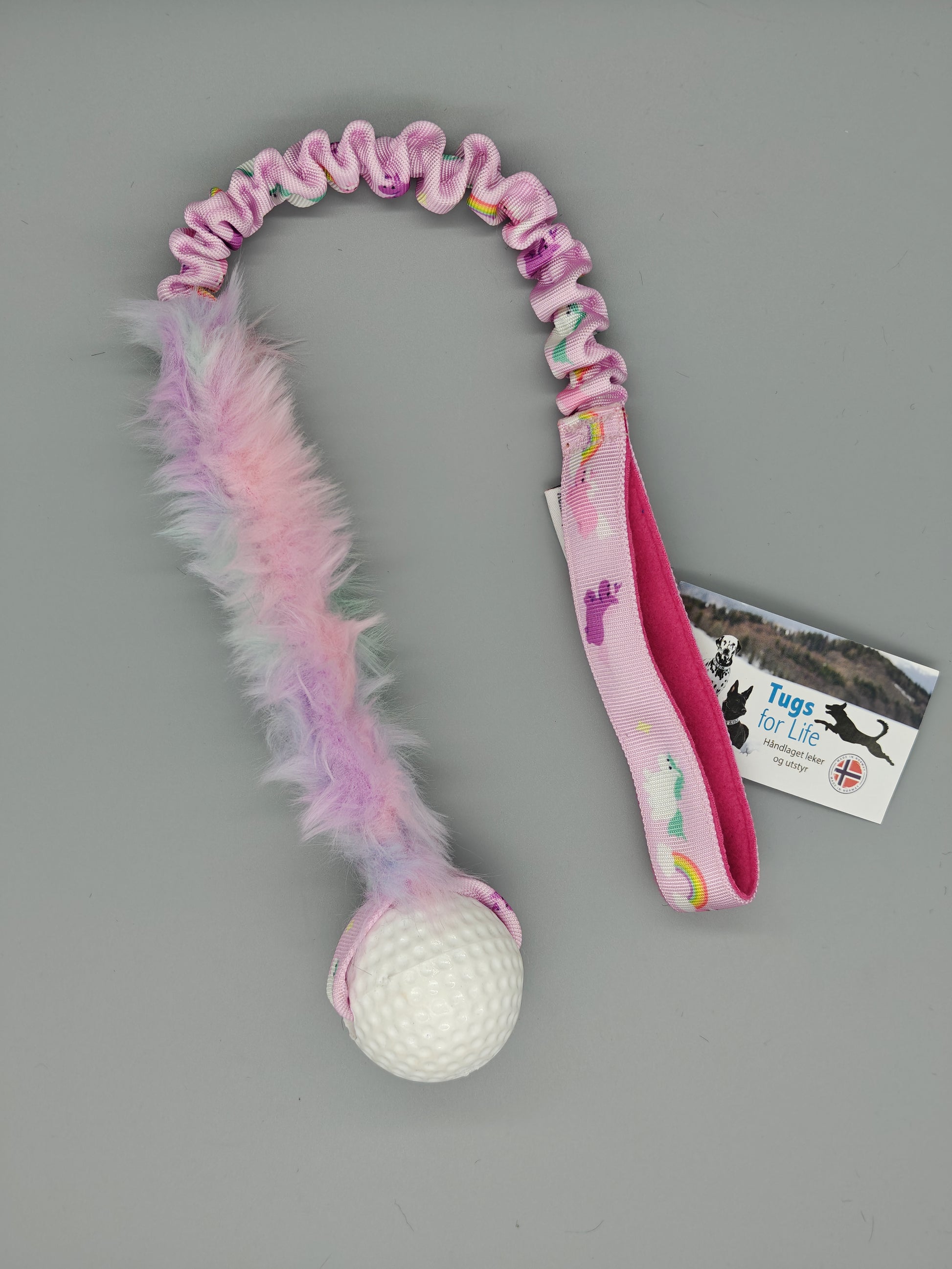 Håndtaket er babyrosa med unicorn pels.
